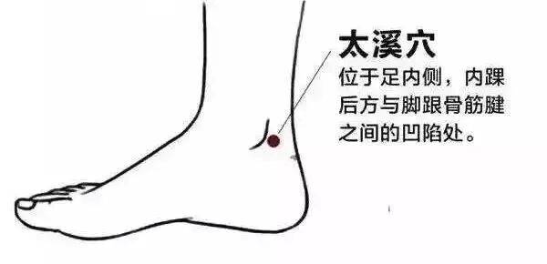 【位置】在踝后内侧,内踝尖与跟腱之间的凹陷中。