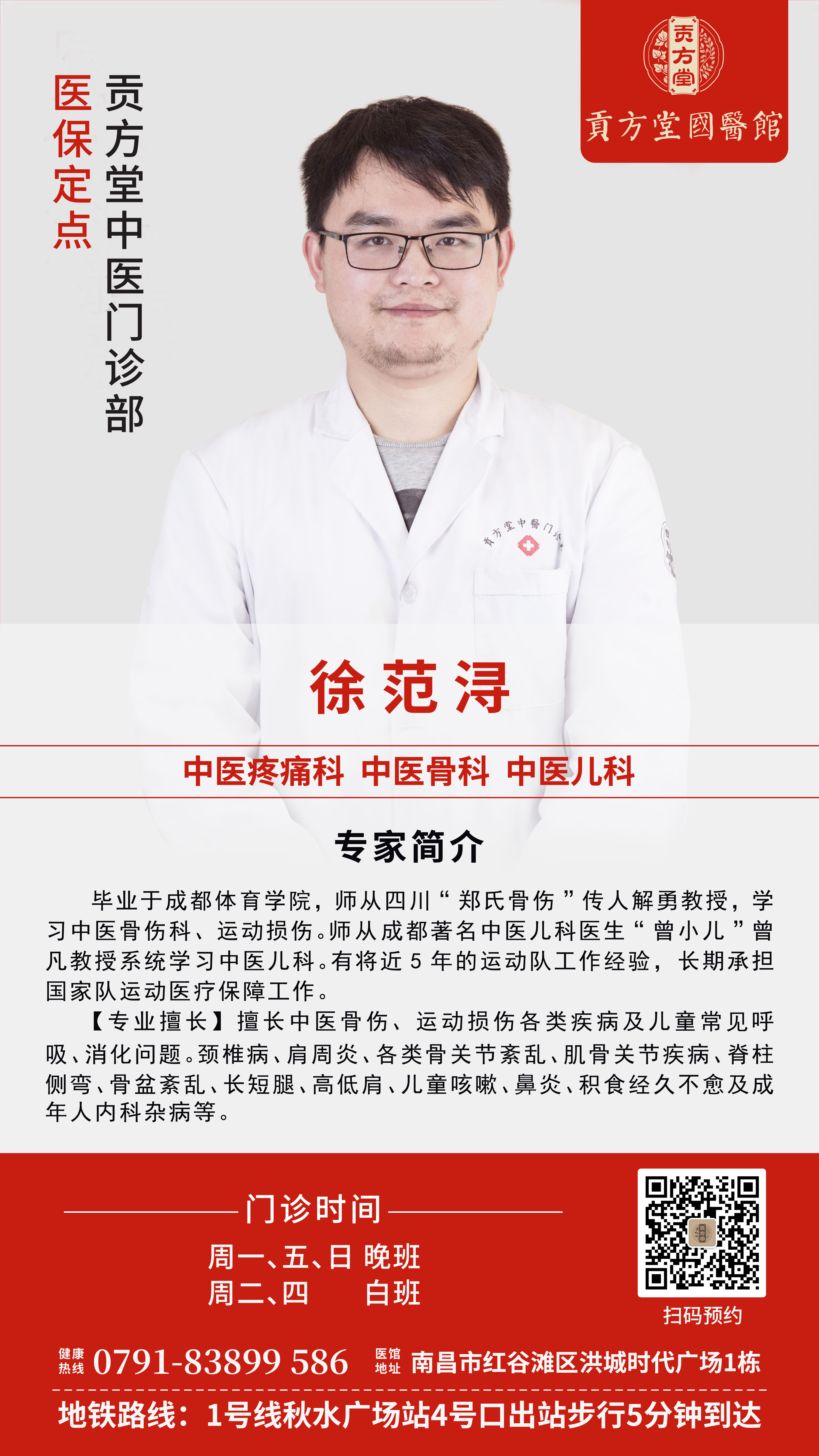 坐诊地点:江西省南昌市红谷滩区洪城时代广场1栋贡方堂国医馆 · 中医门诊部