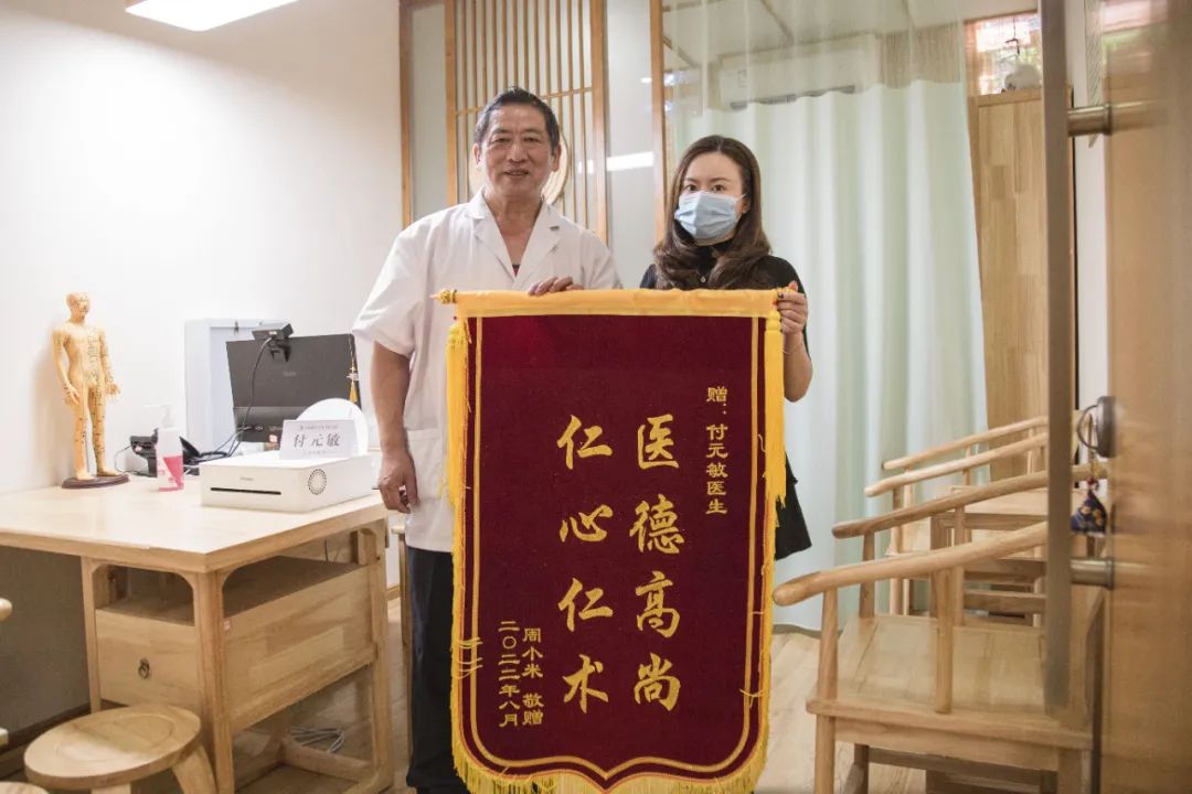 经中医内科主任付元敏检查沟通后定制治疗方案,首先以针灸治疗方案疏通经络,其次给予精油开背按摩的辅助治疗手段,并嘱病人配合进行自我按摩等,经过治疗后,患者病情逐渐好转,遂送来锦旗一面,以表谢意。