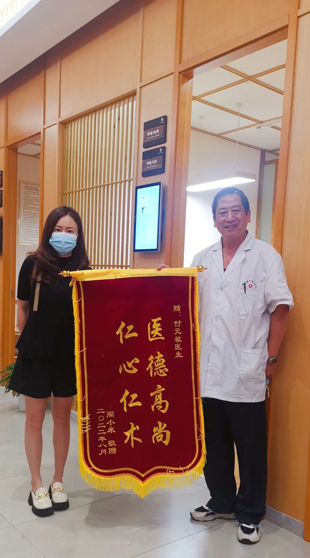 9月26日,南昌贡方堂国医馆上演了温馨的一幕,患者周小姐将一面写有“医德高尚,仁心仁术”的锦旗送到了中医内科主任付元敏的手中,以此表达对贡方堂医护人员的认可及感谢。